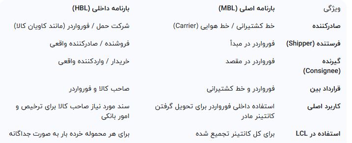 نقش HBL و MBL به ویژه در حمل خرده بار (LCL) کاملاً شفاف میشود: